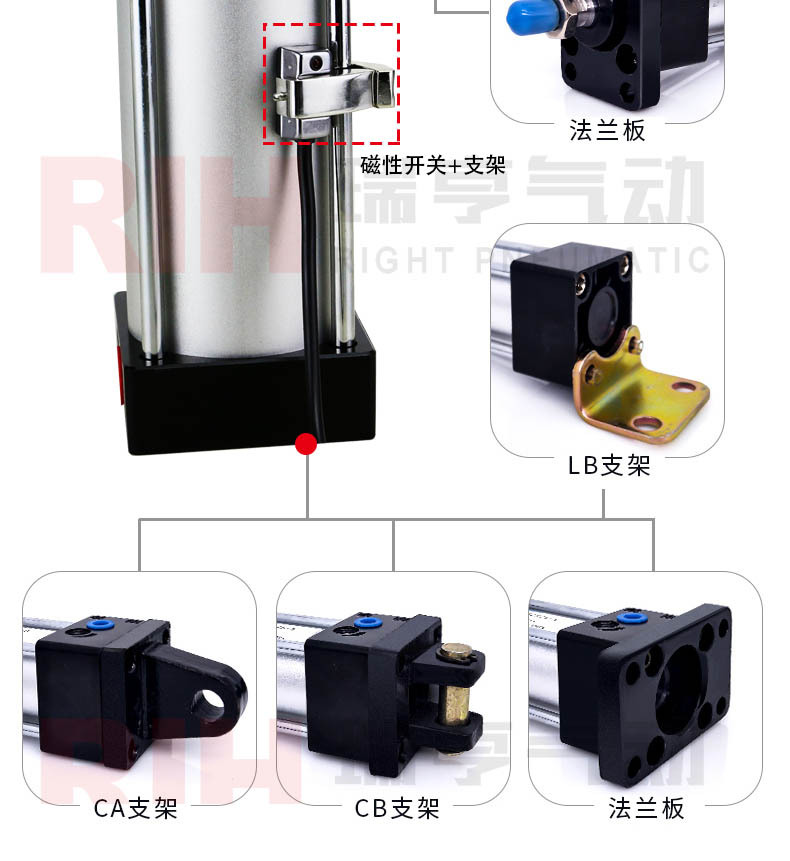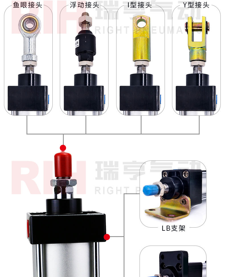 3、多種氣缸安裝附件可供選擇,靈活多變。