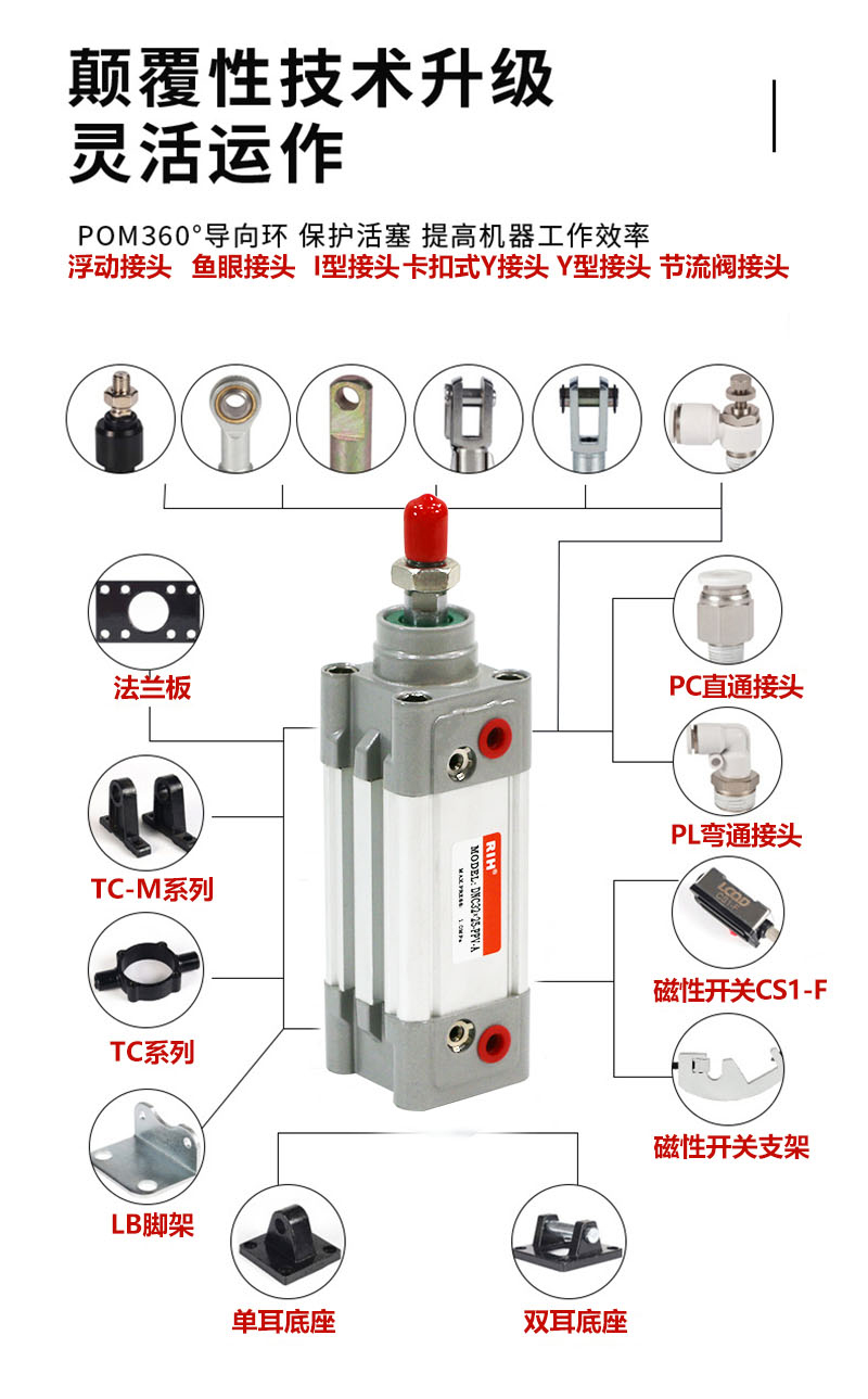 國內常用的標準氣缸其功能都是一樣的,主要差別是外形安裝尺寸以及型號;