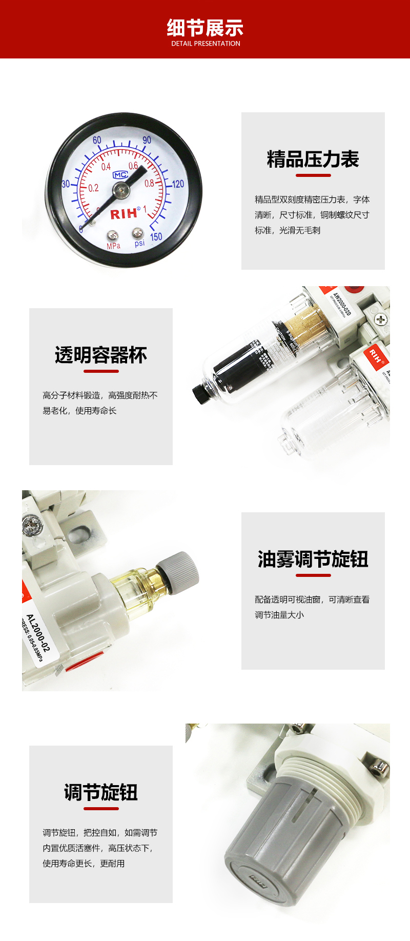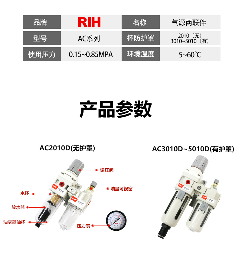 SMC氣動二聯件AC2010-02由調壓過濾器和油霧器構成,他的功能和三聯件是一樣的,公司生產的SMC氣動二聯件能夠完全代替SMC二聯件,結構輕巧緊湊,安裝使用方便;壓力損失小,分水效率高;透明是視察罩,可直接觀察滴油量大?。蝗鸷嗵峁┳钊娴臍庠刺幚磉x型、銷售服務一體式,服務于自動化氣動行業配套與解決方案是我們不變宗旨。