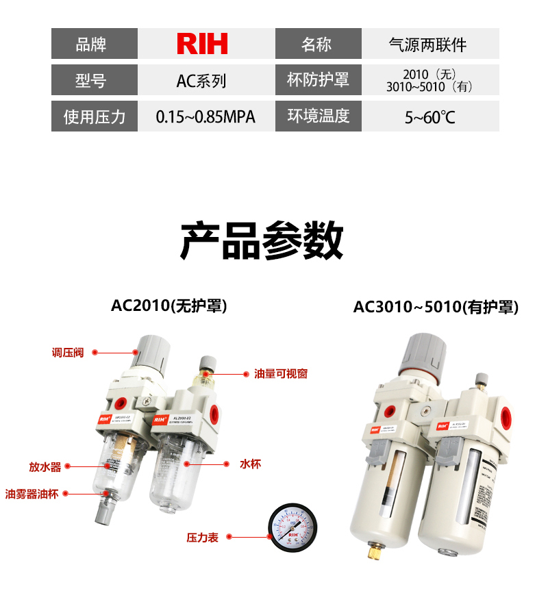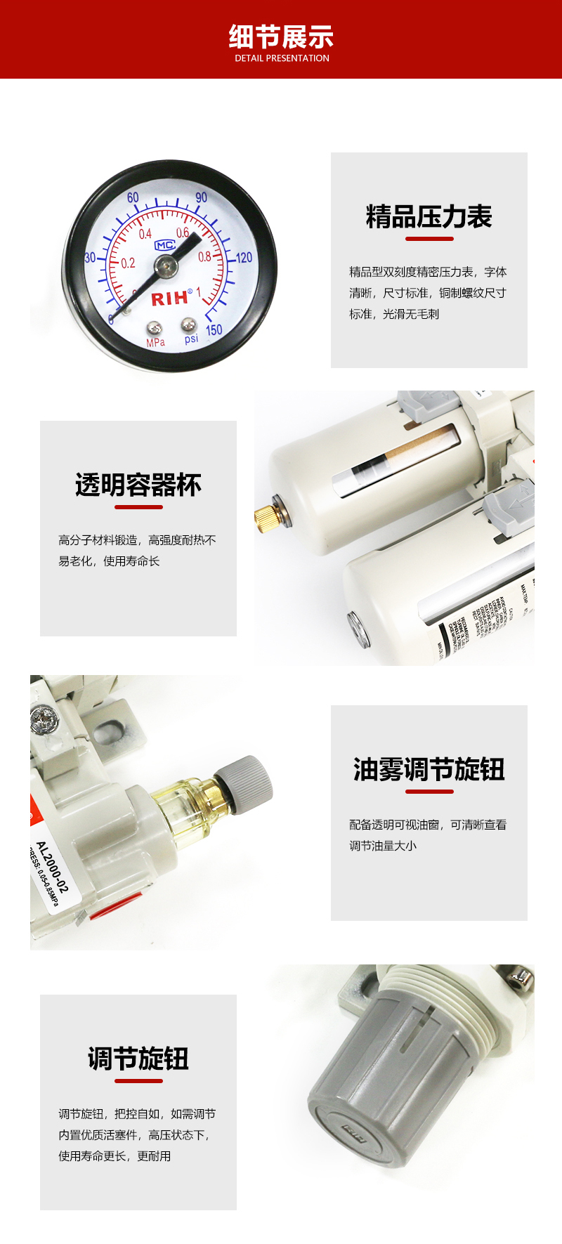 SMC氣動(dòng)二聯(lián)件由調(diào)壓過濾器和油霧器構(gòu)成,他的功能和三聯(lián)件是一樣的,公司生產(chǎn)二聯(lián)件能夠完全代替SMC二聯(lián)件,結(jié)構(gòu)輕巧緊湊,安裝使用方便;壓力損失小,分水效率高;透明是視察罩,可直接觀察滴油量大小;瑞亨提供最全面的氣源處理選型、銷售服務(wù)一體式,服務(wù)于自動(dòng)化氣動(dòng)行業(yè)配套與解決方案是我們不變宗旨。