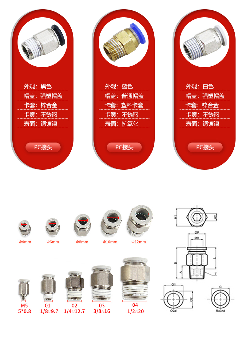 1:圓螺紋直通型結(jié)構(gòu),外觀小巧,節(jié)省安裝空間,性價(jià)比高;2:螺紋部分涂有密封劑,確保螺紋連接部分無(wú)泄漏;3:鍍鎳的筒體可以防腐蝕和污染,應(yīng)用范圍更廣;4:塑料接口部分多種顏色可選,方便你調(diào)整配管需求。