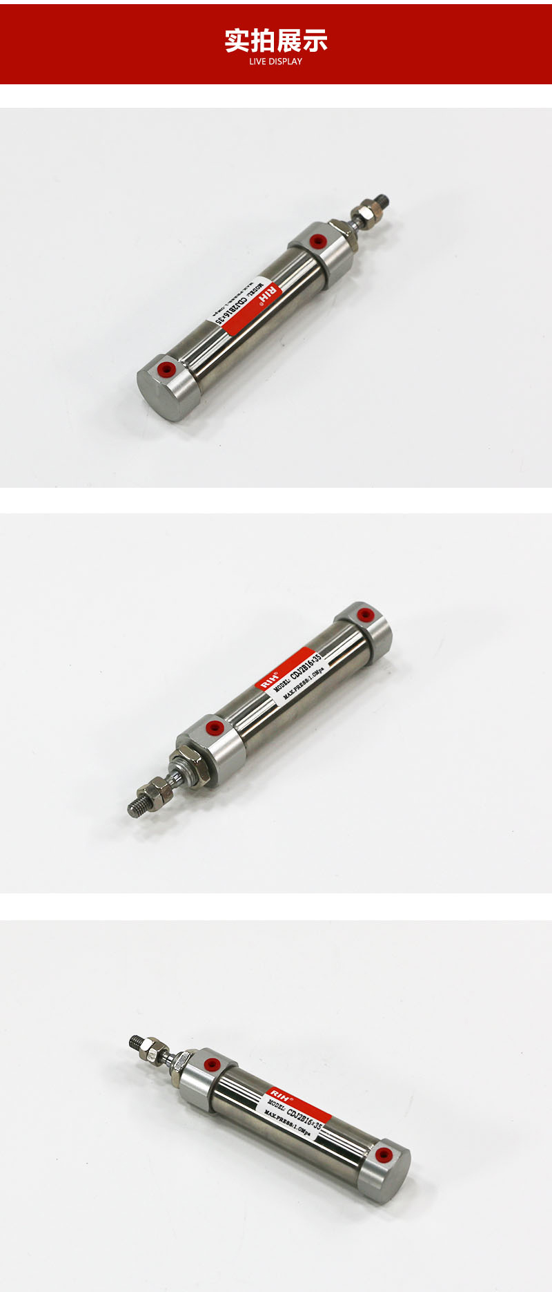 1、迷你氣缸缸徑一般分為6.10.12.16.20.25.32.40mm不等。