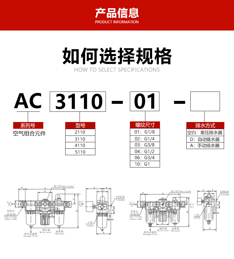 SMC型氣動三聯件-自動排水型-AC3110-03D